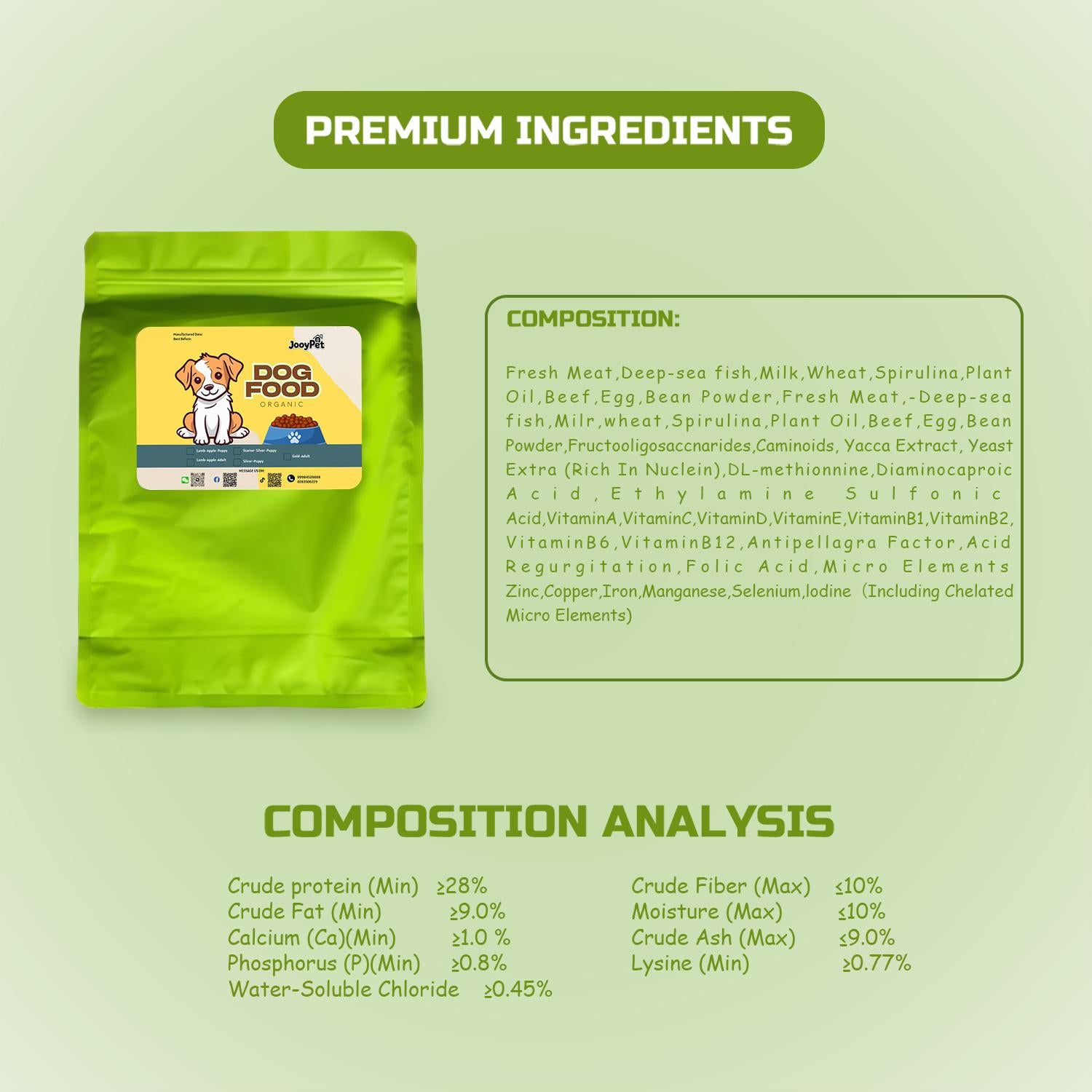 Aozi 1kg Organic Lamb & Apple Dry Dog Food for Adults & Puppies - Complete Balanced Nutrition with Immune Boost & Healthy Skin Coat Support