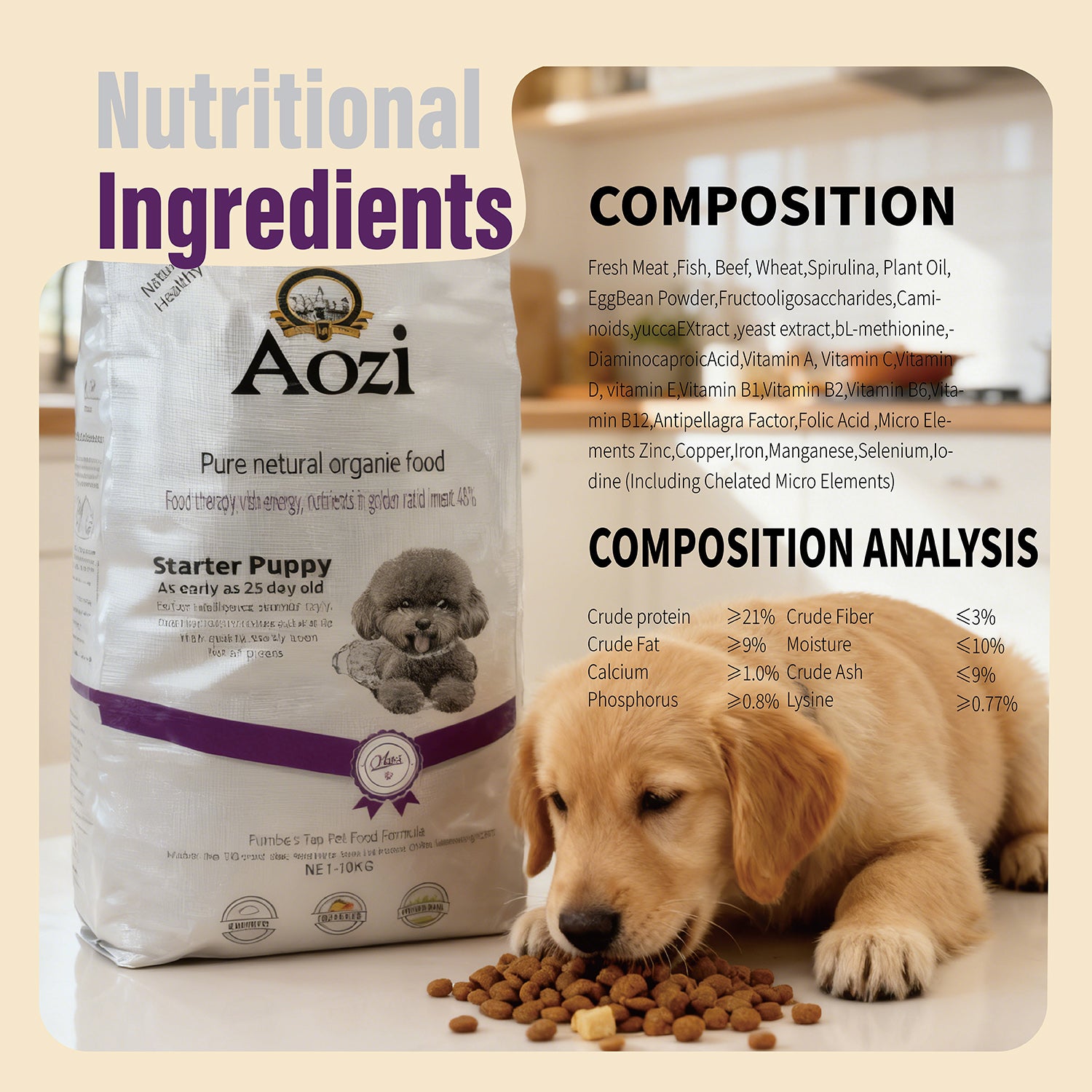 Aozi Starter food offers a gentle introduction to solid food. Its formulation caters to the needs of young puppies, ensuring they enjoy their meal. Trust Aozi for a smooth transition in your puppy's diet. 🐾